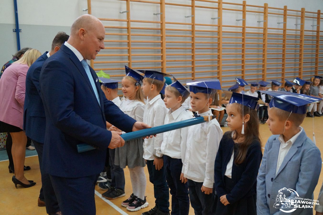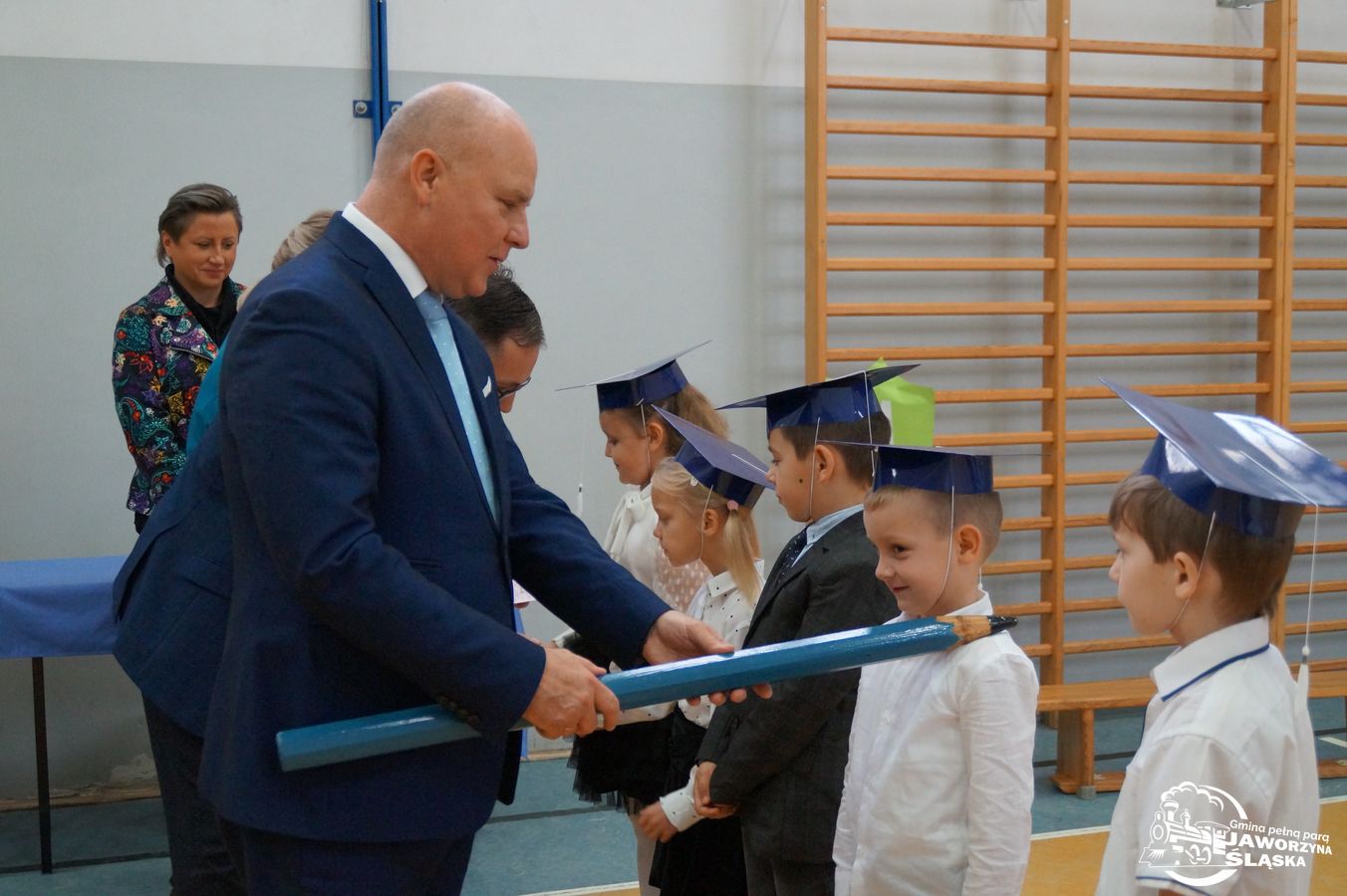W szkole w Jaworzynie Śląskiej ślubowanie złożyło 62 uczniów klas pierwszych. – Wiele lat jestem dyrektorem, ale uwierzcie, ze każdym razem uroczystość pasowania przeżywam tak samo mocno. Ślubowali uczniowie, ślubowali rodzice, ja też mogę przyrzec, że zrobimy wszystko, by ten skarb, który nam powierzacie jak najlepiej kształtować, uczyć, zachęcać do rozwijania talentów. Ktoś kiedyś powiedział, że, jeśli nie chcesz mieszkać w zaścianku, należy uczynić ze swego miasta Manhattan. Codziennie w szkole będziemy ten Manhattan tworzyć – mówił dyrektor szkoły Krzysztof Sołtys.