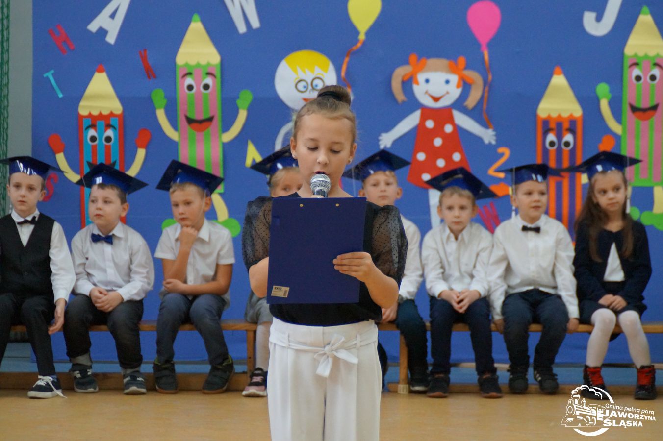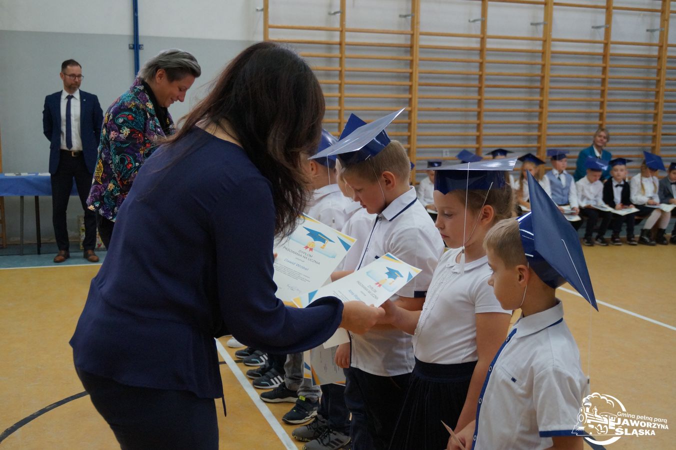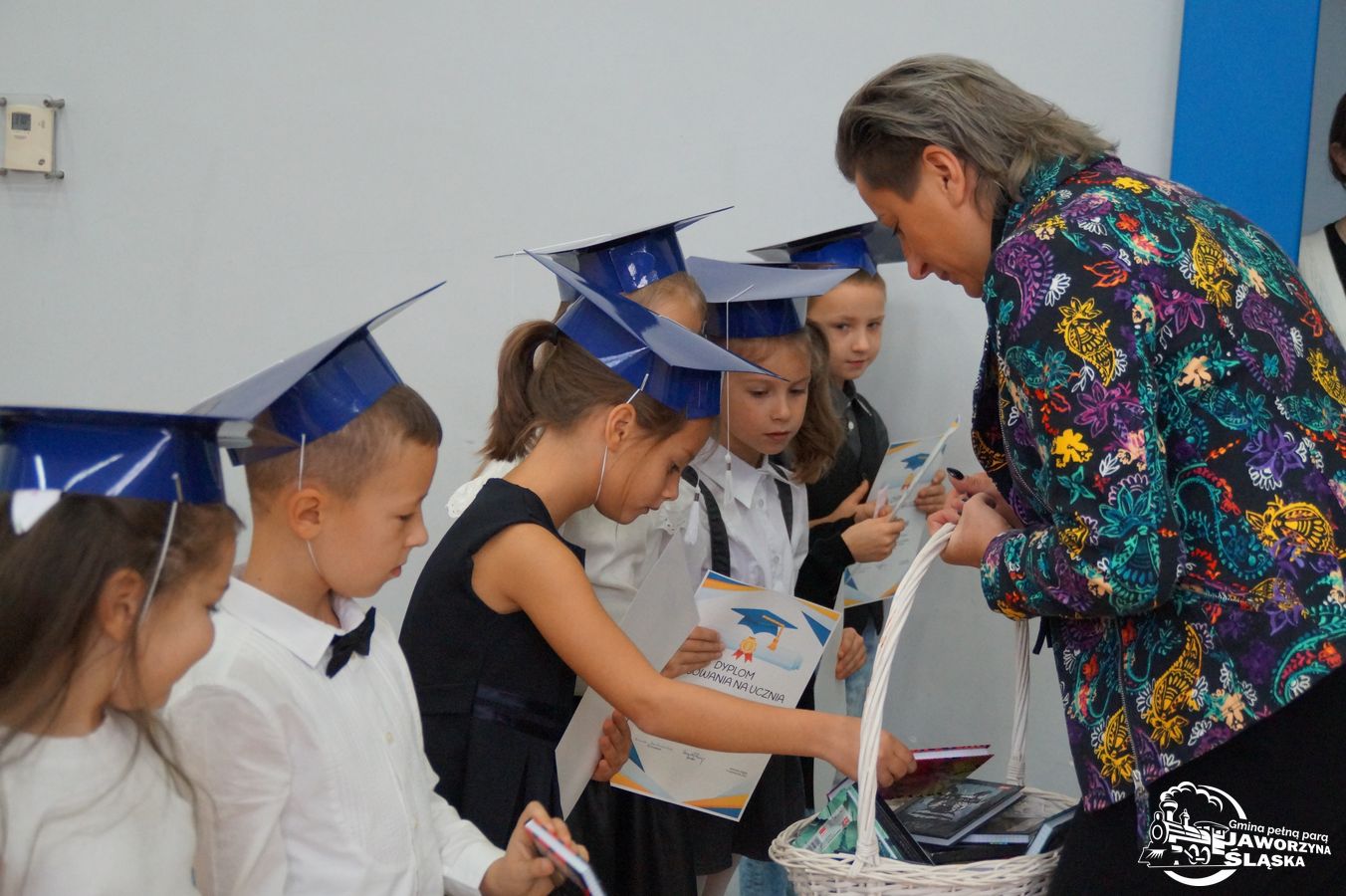 Uroczystego pasowania dokonała dyrektor Małgorzata Adamowicz. Pierwszoklasiści otrzymali także legitymacje szkolne oraz prezenty ufundowane przez rodziców, Urząd Miejski w Jaworzynie Śląskiej oraz uczniów klas drugich i trzecich. – To dla was bardzo ważny dzień, stajecie się pełnoprawnymi uczniami naszej szkoły. Uczcie się dobrze, rozwijajcie swoje pasje, a my dołożymy wszelkich starań, byście czuli się tu jak najlepiej – mówiła Małgorzata Adamowicz.