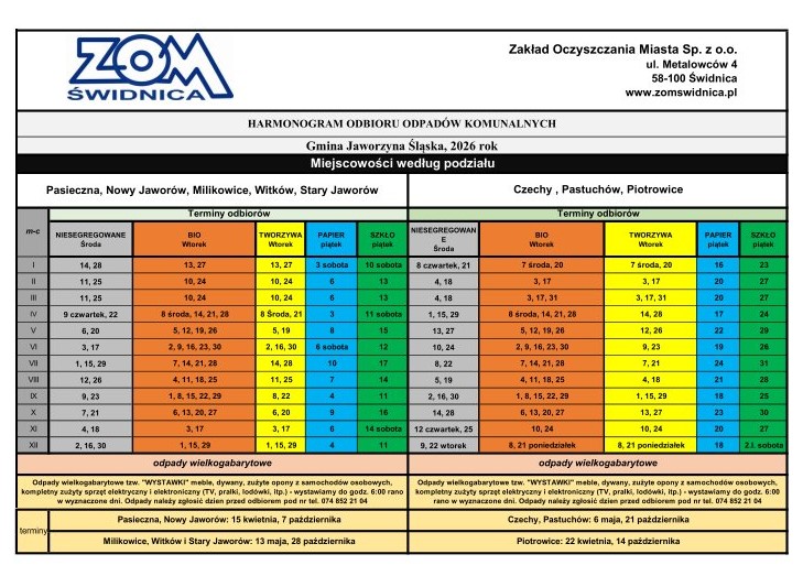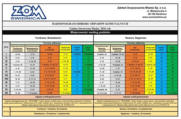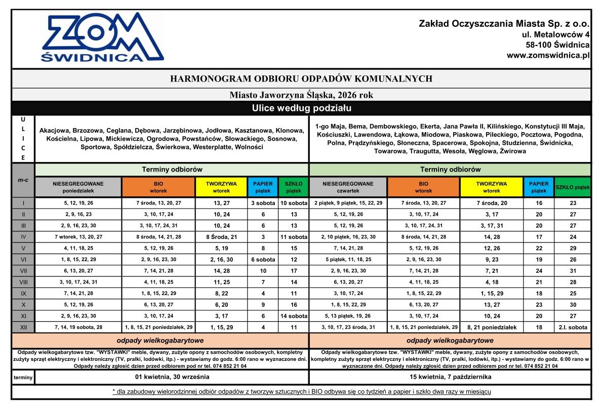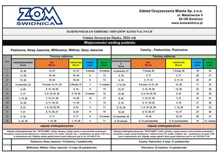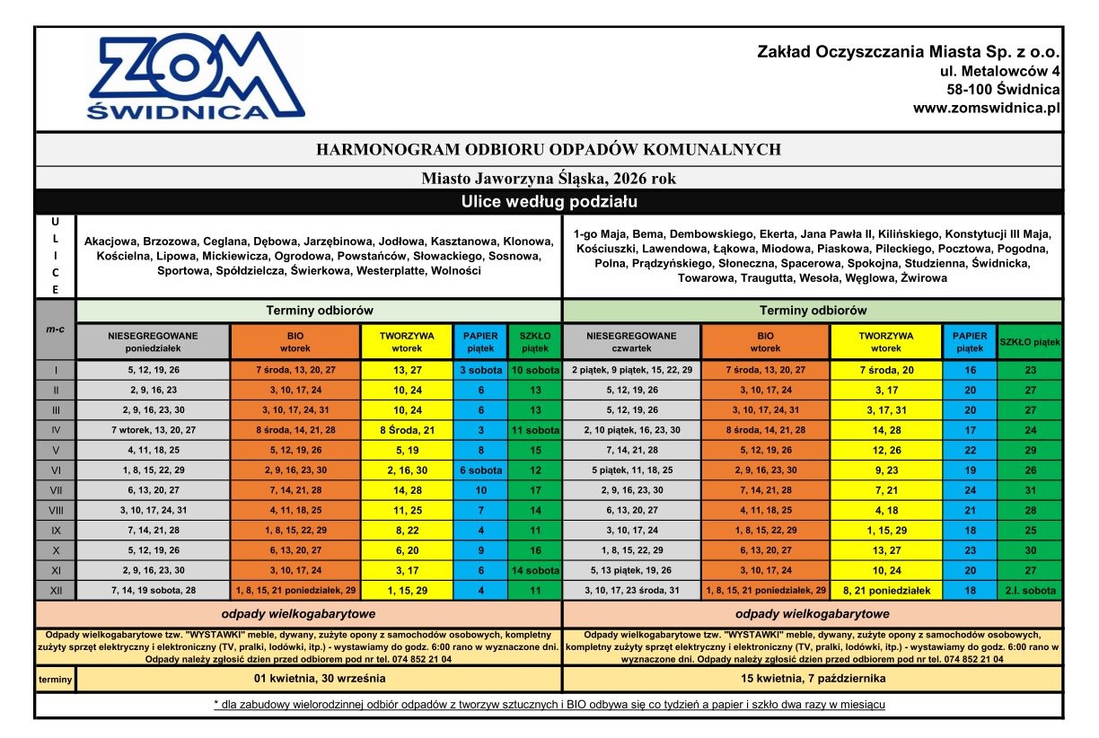 W 2026 r. będą obowiązywały nowe harmonogramy odbioru odpadów.