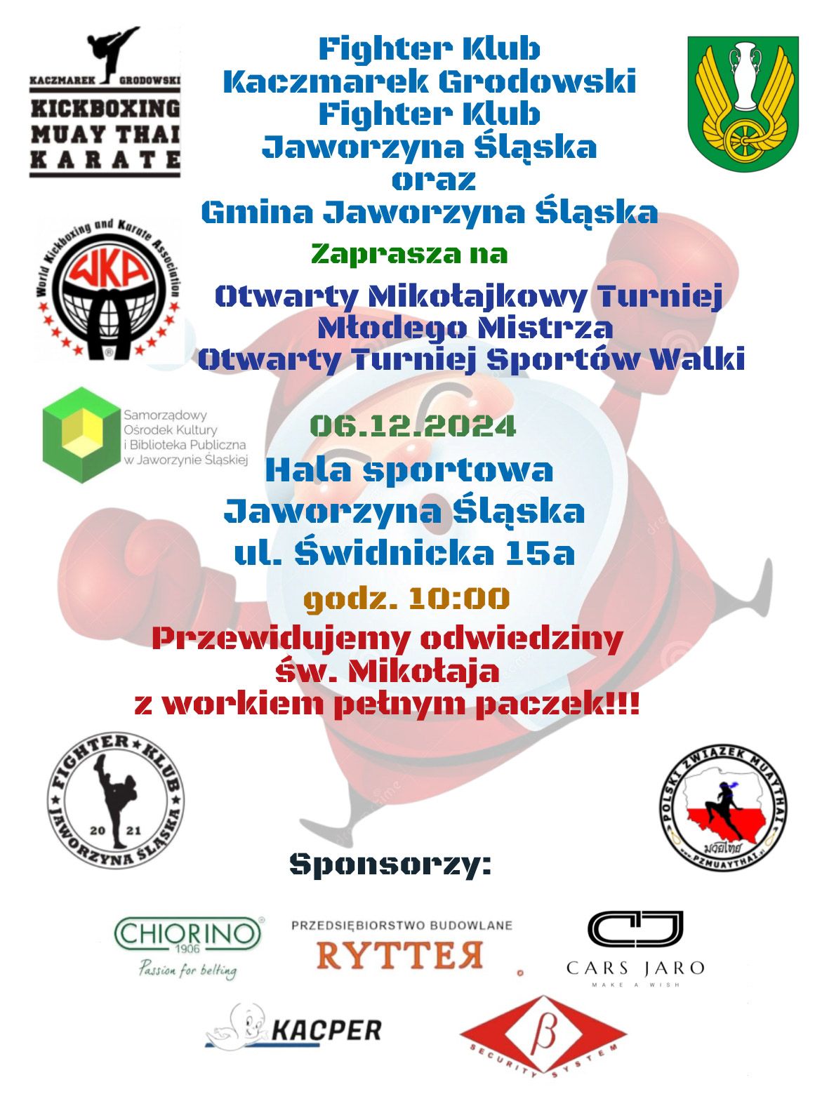 Moc sportowych emocji, odwiedziny świętego Mikołaja i mnóstwo dobrej zabawy czekają na uczestników Otwartego Mikołajkowego Turnieju Młodego Mistrza, na jaki zaprasza Fighter Klub Jaworzyna Śląska.