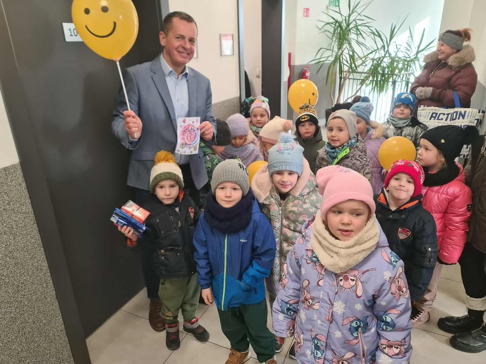 Z życzeniami uśmiechu i radości burmistrza Jaworzyny Śląskiej Grzegorza Grzegorzewicza oraz pracowników Urzędu Miejskiego w Jaworzynie Śląskiej odwiedzili przedszkolaki z grupy „Krzysie” Samorządowego Przedszkola „Chatka Puchatka”.