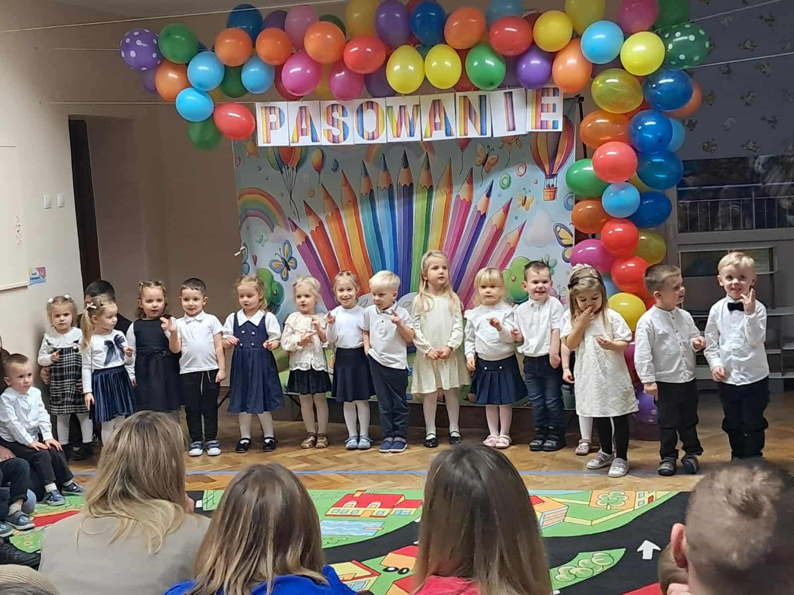 Uroczystość odbyła się pod koniec listopada. Mali wykonawcy z dumą zaprezentowali przygotowane wierszyki, piosenki oraz taniec, który wywołał uśmiechy na twarzach zebranych gości. Mimo tremy dzieci świetnie poradziły sobie z występem, a ich zaangażowanie i radość stworzyły wyjątkową atmosferę. Ewa Woszczyk, zastępca dyrektora symbolicznym ołówkiem dokonała pasowania. Każde dziecko otrzymało pamiątkowy dyplom oraz upominek. – To ważny moment w życiu każdego małego przedszkolaka, symboliczny krok w nowy etap pełen zabawy, nauki i pierwszych przyjaźni. Dla wielu maluchów był to pierwszy tak podniosły moment w przedszkolu. Uroczystość pełna była wzruszeń, dumy i radości, a dla rodziców stanowiła piękne potwierdzenie, jak szybko ich pociechy rosną i zdobywają nowe umiejętności. Gratulujemy wszystkim nowo pasowanym przedszkolakom z grup „Misie” i „Sowy” oraz życzymy im wielu wspaniałych chwil w przedszkolnej przygodzie! – relacjonują Dominika Pańczyk i Karolina Mirek, wychowawcy grup.