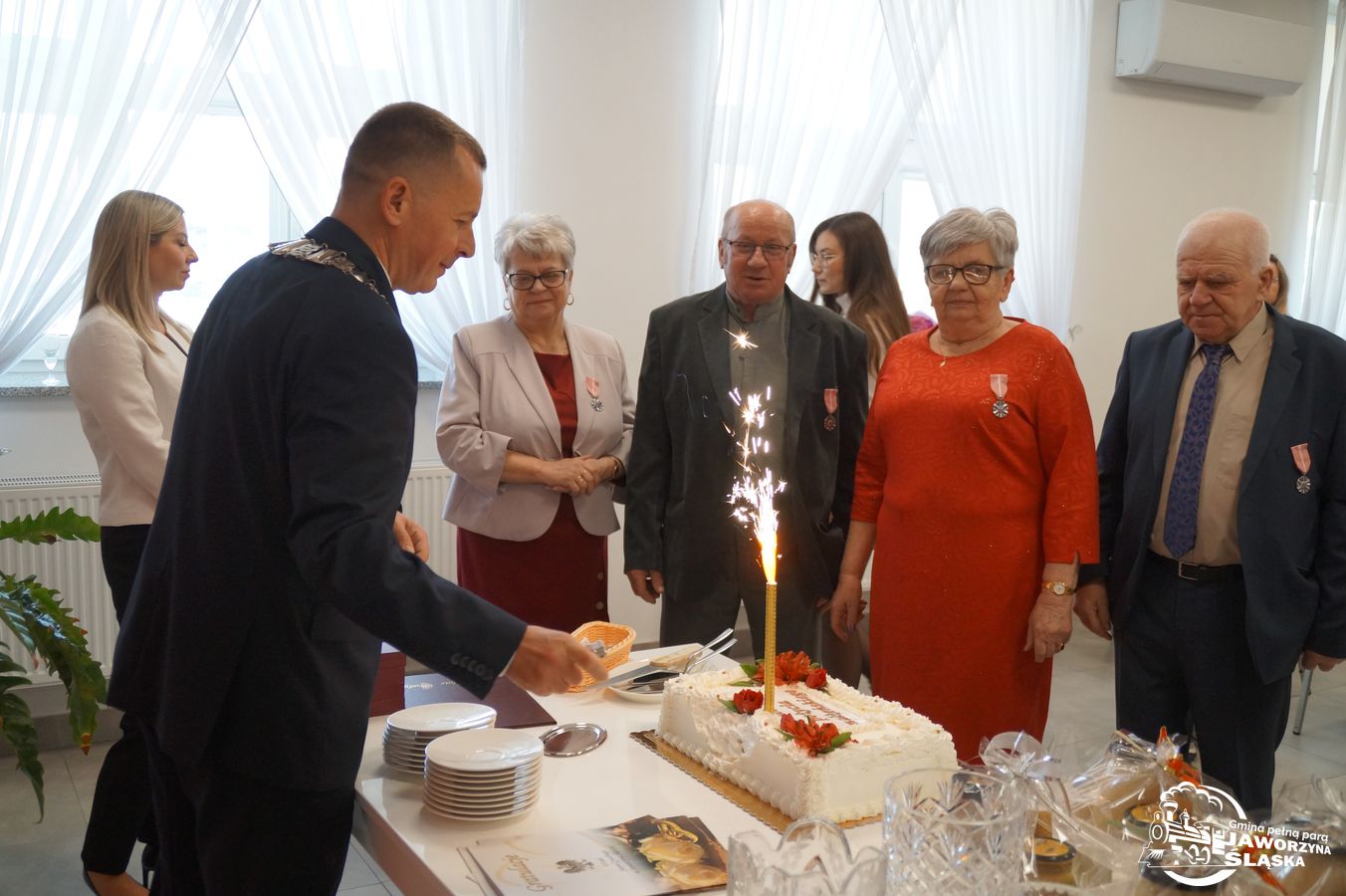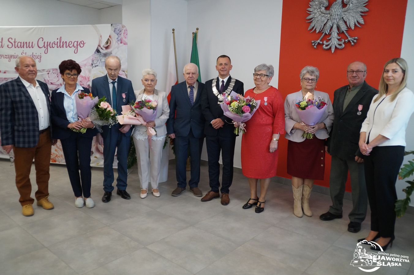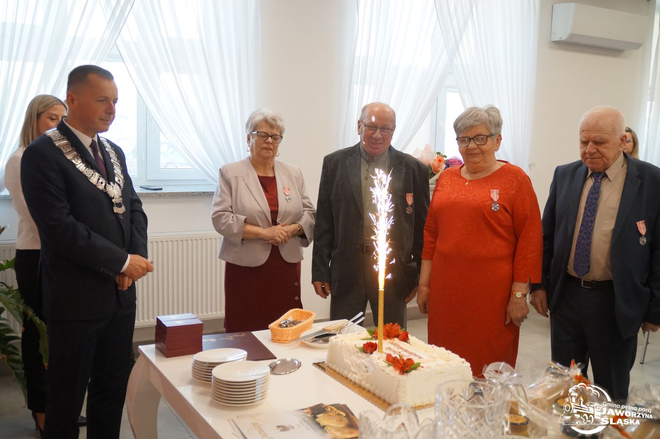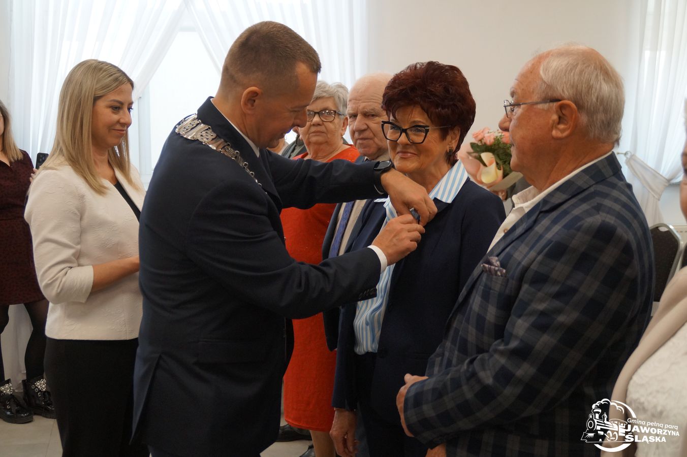 Medale za długoletnie pożycie małżeńskie wręczyli jubilatom burmistrz Jaworzyny Śląskiej Grzegorz Grzegorzewicz oraz zastępca kierownika Urzędu Stanu Cywilnego Magdalena Dyko. – To wyjątkowy dzień zarówno dla Państwa, jak i dla całej gminy. Uroczystość, w której bierzemy udział, to piękne świadectwo i przykład dla młodszych pokoleń, że można wytrwać przy sobie przez tyle lat pomimo trudności, których na pewno w waszym życiu nie brakowało. Pięćdziesiąt lat temu przysięgaliście sobie trwać razem, kochać się i wspierać. Dotrzymaliście słowa, Życzę jeszcze wielu wspólnych lat spędzonych w zdrowiu i pomyślności – mówił burmistrz Grzegorz Grzegorzewicz.