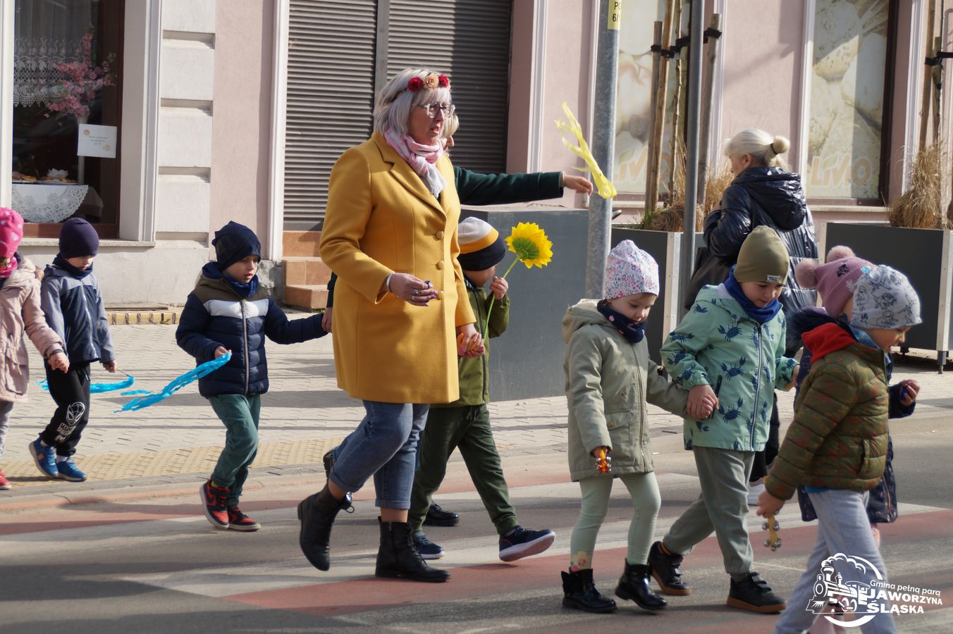 Najmłodsi mieszkańcy gminy wraz z opiekunkami wyruszyli na spacer po ulicach Jaworzyny Śląskiej, głośno wyganiając zimę i przywołując wiosnę. Na zakończenie pod budynkiem przedszkola odśpiewały jeszcze piosenki cześć Pani Wiosny. W podziękowaniu za włożony trud dzieci zostały obdarowane cukierkami przez Urząd Miejski w Jaworzynie Śląskiej.