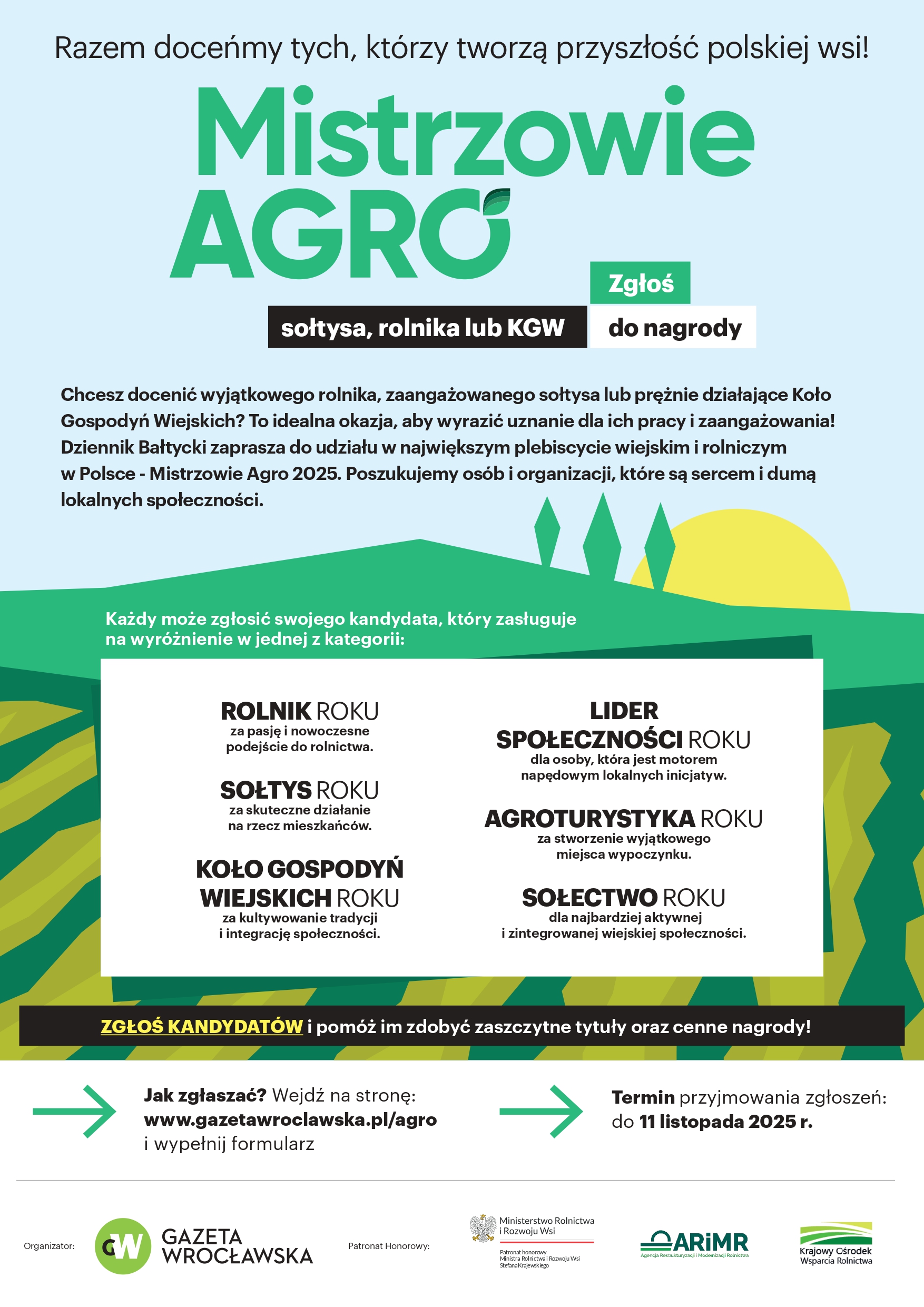 Z całą pewnością to największy w Polsce wiejsko-rolniczy plebiscyt, w którym najpierw w powiatach i regionach, a później w skali województwa i całego kraju zostaną przyznane zaszczytne tytuły dla sołtysów, rolników, liderów społeczności i kół gospodyń wiejskich. O nagrody i wielką promocję powalczą również gospodarstwa agroturystyczne oraz sołectwa. Nowością będą nagrody dla nadleśniczych!