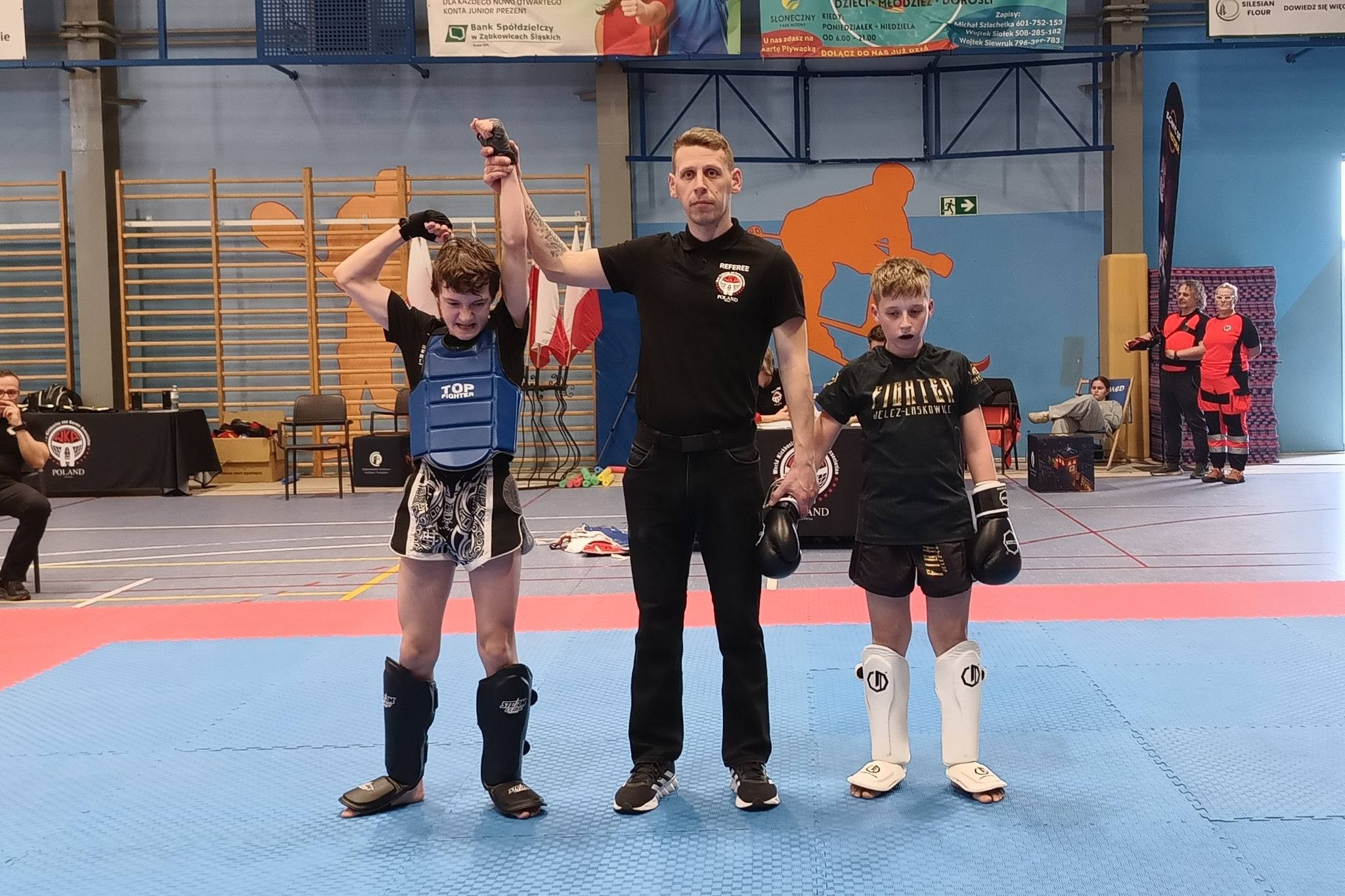 Matylda Rybka zdobyła dwa medale – brąz w technikach specjalnych oraz srebro w walkach soft. Jurek Wasyliszyn po bardzo wyrównanej walce jednym tylko punktem ustąpił rywalowi i wywalczył srebrny medal w Point Fighting w kategorii kadet -50 kg. Antoni Pasikowski stoczył dwa bardzo dobre pojedynki w półfinale i w finale zdobył złoto w kategorii kick light, dziecko starsze -45 kg. Igor Karniej walkę finałową zakończył przed czasem, zdobywając I miejsce i złoty medal w kategorii K1 Rules, junior -75kg.