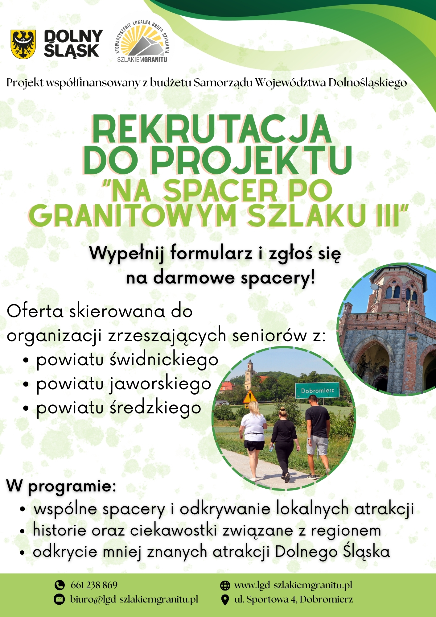 Seniorzy działający w organizacjach i grupach zrzeszających seniorów mogą zgłaszać się do projektu realizowanego przez Lokalną Grupę Działania „Szlakiem Granitu” „Na spacer po granitowym szlaku III”.