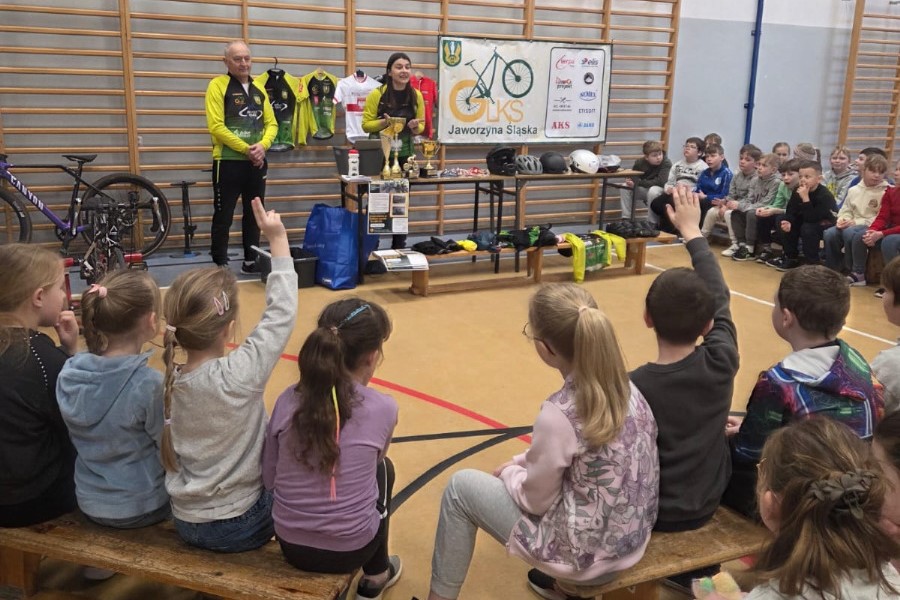Dlaczego kask powinien być niezbędnym wyposażeniem rowerzysty i jak zadbać o bezpieczeństwo na drodze – odpowiedzi na te i inne pytania mogli uzyskać uczniowie klas I – III Szkoły Podstawowej w Jaworzynie Śląskiej. Ich gośćmi byli Antoni Szewczyk i Dorota Szczepańska – trenerzy w sekcji kolarskiej Gminnego Ludowego Klubu Sportowego.