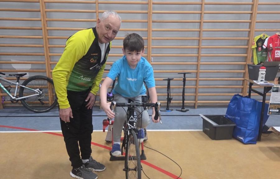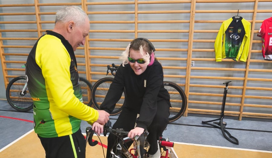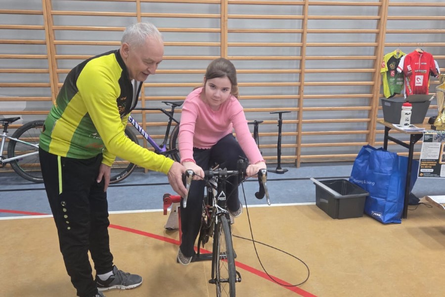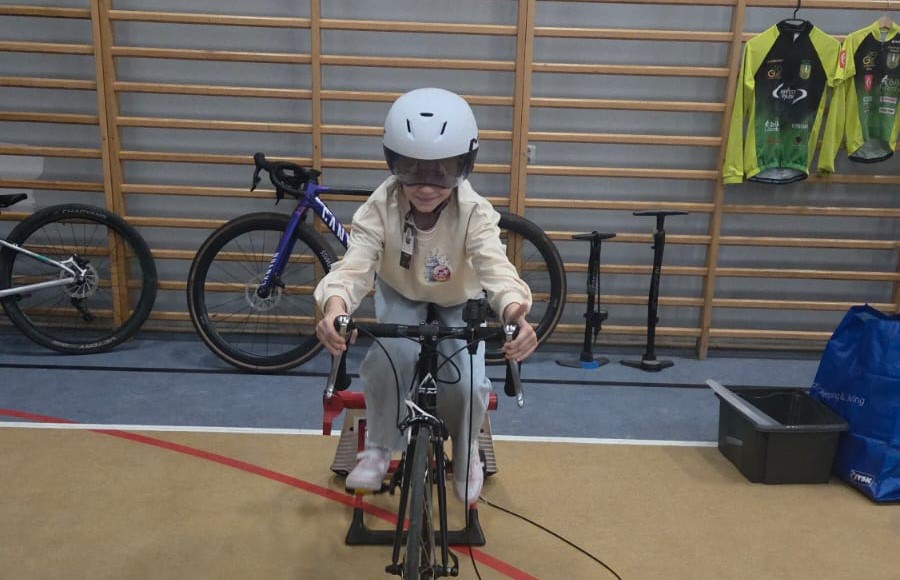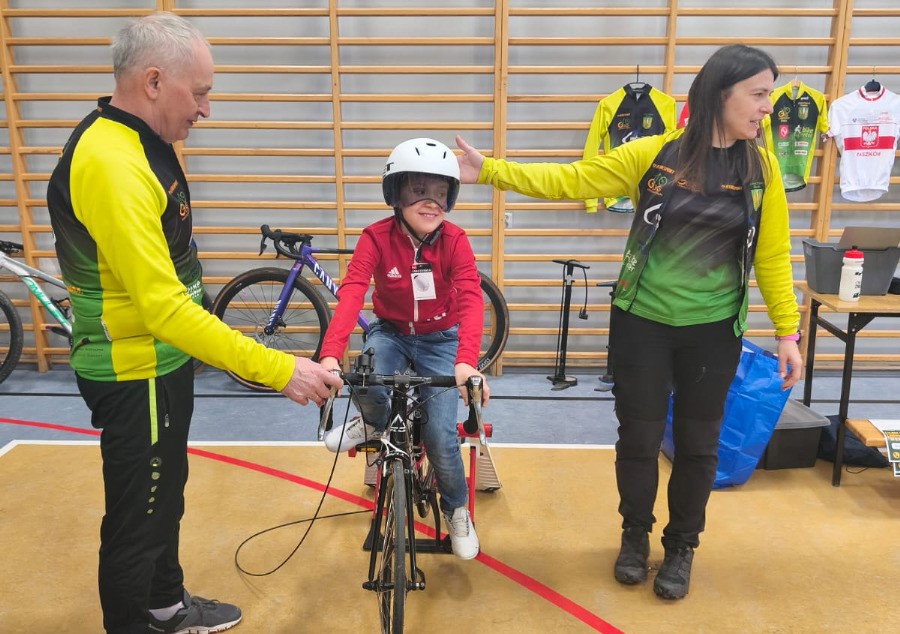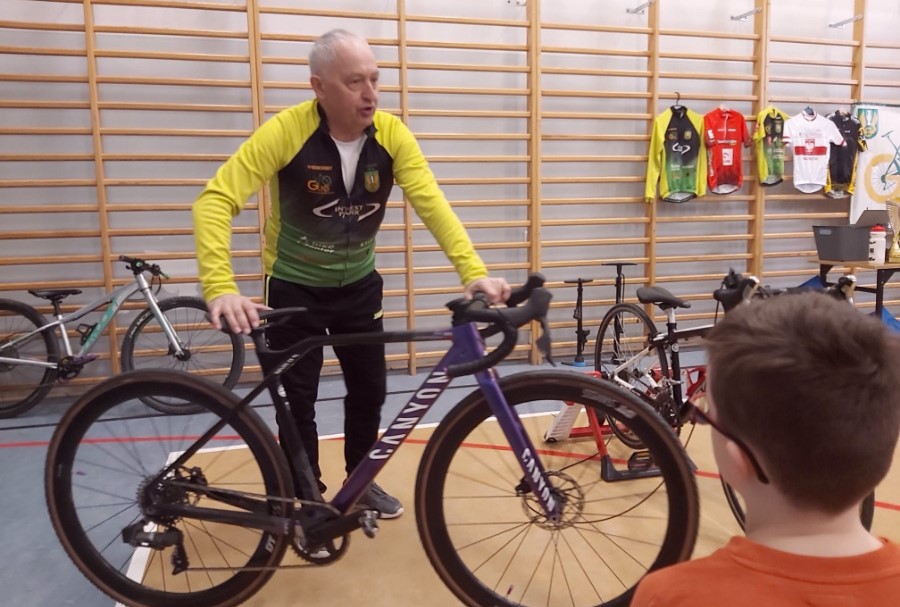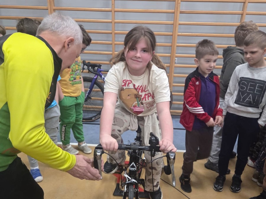 Najwięcej emocji wśród uczniów wzbudziła część praktyczna, w czasie której mieli okazję nie tylko z bliska przyjrzeć się rynsztunkowi kolarza, przymierzyć różnego rodzaju kaski i nauczyć się je regulować, ale też przejechać się na rowerze szosowym.