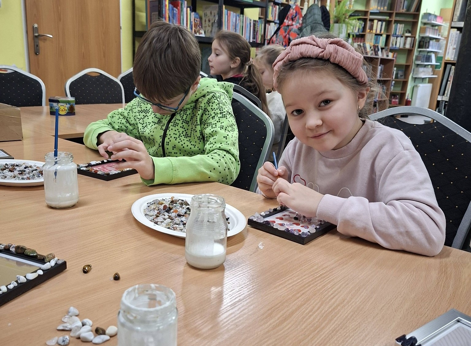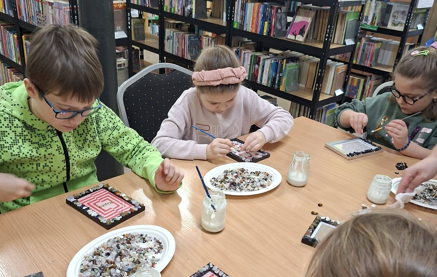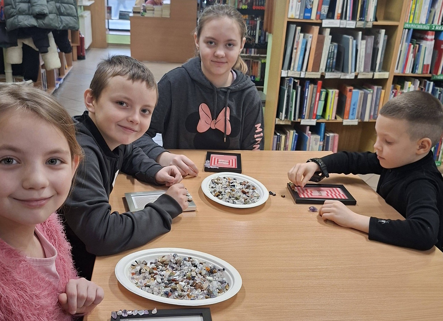 We wtorek, 10 lutego w bibliotece odbyły się warsztaty poświęcone minerałom i ich niezwykłym właściwościom. Spotkanie poprowadziła przedstawicielka „Geo Zabawy”, która w niezwykle ciekawy sposób wprowadziła w fascynujący świat kamieni, kryształów i naturalnych skarbów Ziemi. Podczas zajęć uczestnicy mieli okazję poznać różnorodne minerały, dowiedzieć się, czym się charakteryzują oraz jakie mają zastosowanie. Dużym zainteresowaniem cieszyło się oglądanie imponujących okazów, zachwycających kolorami, strukturą i formą. Była to prawdziwa lekcja uważnego obserwowania i odkrywania piękna natury. W drugiej części spotkania uczestnicy wykonali ramki ozdobione minerałami, łącząc zdobytą wiedzę z kreatywnością oraz własną wyobraźnią.