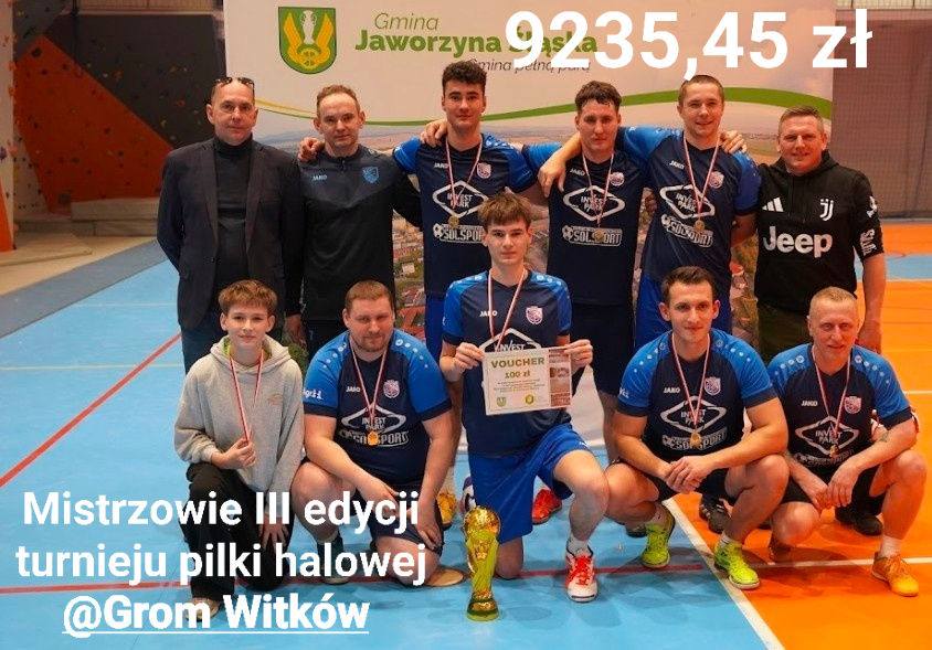 Turniej piłkarski odbył się w niedzielę, 1 lutego w hali edukacyjno-sportowej w Jaworzynie Śląskiej. Atrakcji dla wszystkich, którzy wzięli w nim udział, nie zabrakło. O zwycięstwo i walczyło 20 drużyn piłkarskich. Najlepsi okazali się piłkarze Gromu Witków, którzy w finale pokonali Weteranów Sportu. Trzecie miejsce na podium przypadło drużynie Absolwent Pasieczna. Najlepszym zawodnikiem i MVP turnieju został Przemek Kloc.