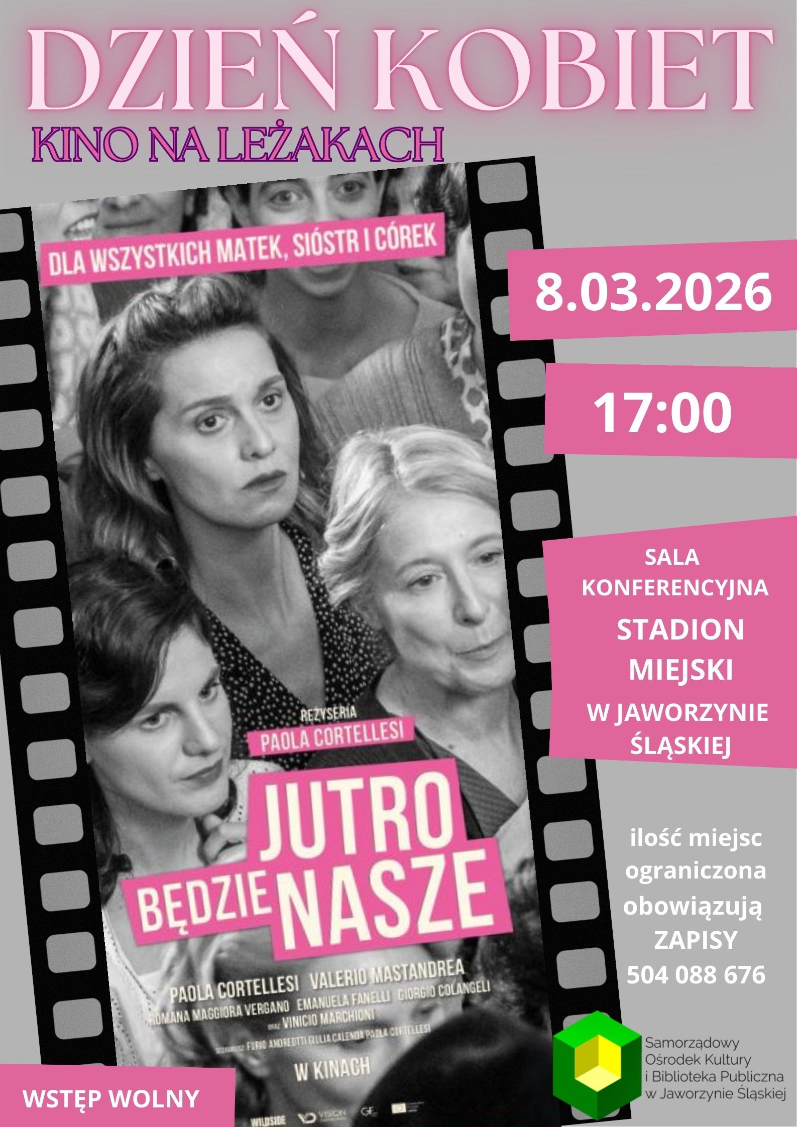 Emisja filmu rozpocznie się o godz. 17.00 w sali konferencyjnej na stadionie miejskim w Jaworzynie Śląskiej. Panie będą mogły obejrzeć włoską produkcję „Jutro będzie nasze” – opowieść o sile, solidarności i kobiecej odwadze.